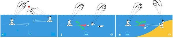 5. לתת מרחב ולפנות דרך לגולש שאין לו שליטה על הציוד, כמו למשל גולש חוזר לגלשן או קייט במים.